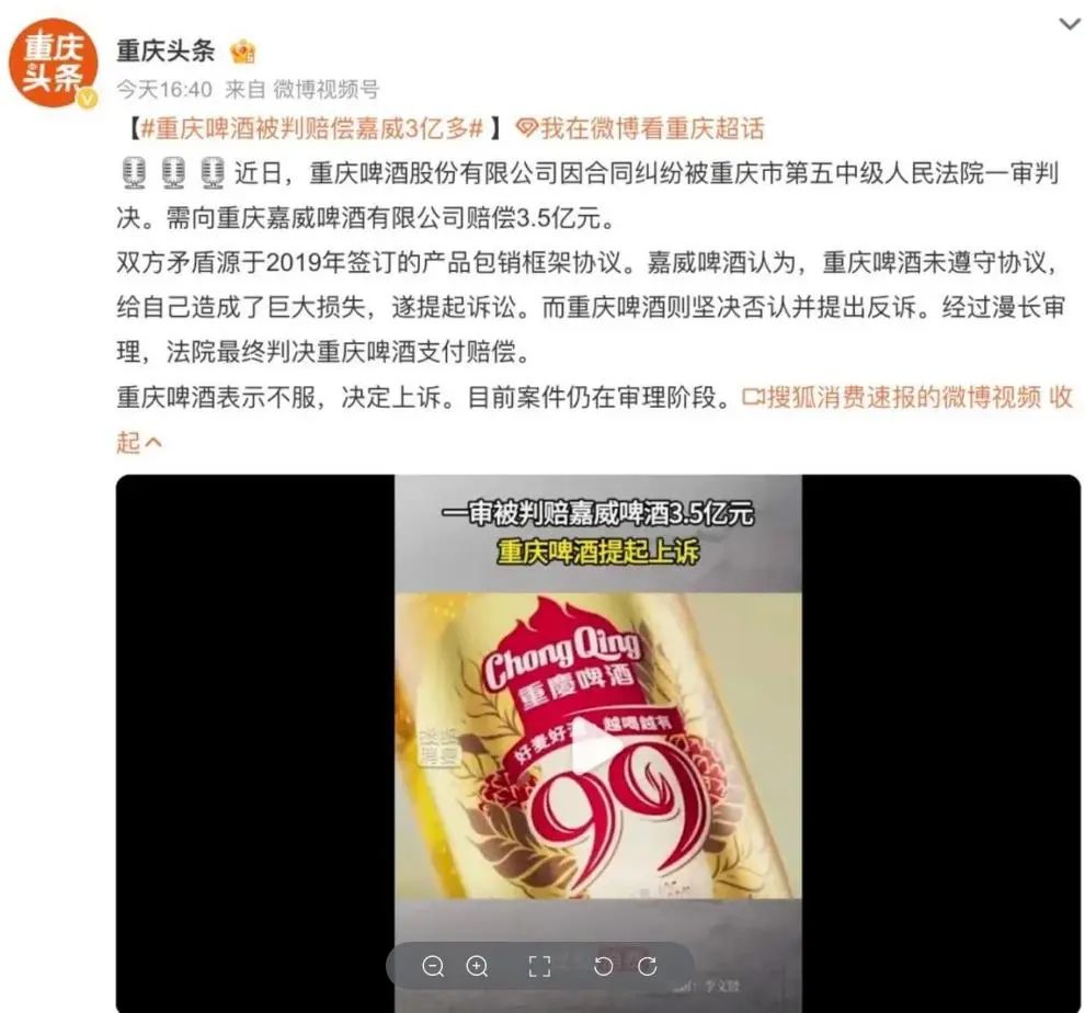 近日,重庆高院一纸判决撕开啤酒江湖的暗疮——重庆啤酒因违反16年前签订的《包销协议》,被判向代工厂嘉威赔偿3.5亿元。
