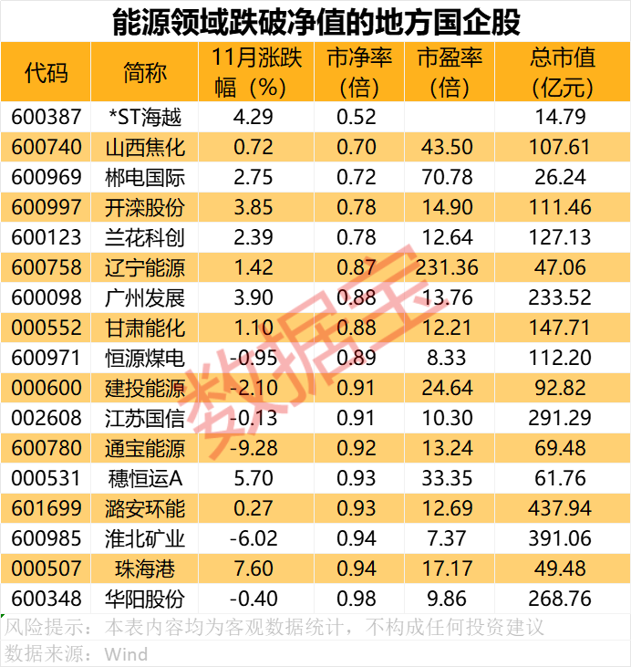 据证券时报·数据宝统计,A股中电力、煤炭、石化等能源领域的地方国有企业共有127家,11月以上涨为主,平均涨幅2.65%,福能东方累计涨幅83.08%,居首,电力风电、长春燃气涨超40%紧随其后。