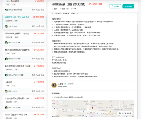 据BOSS直聘,武汉光谷猿辅导的某短期班班主任职位工作为一周五天,每天下午1点-10点,双休。